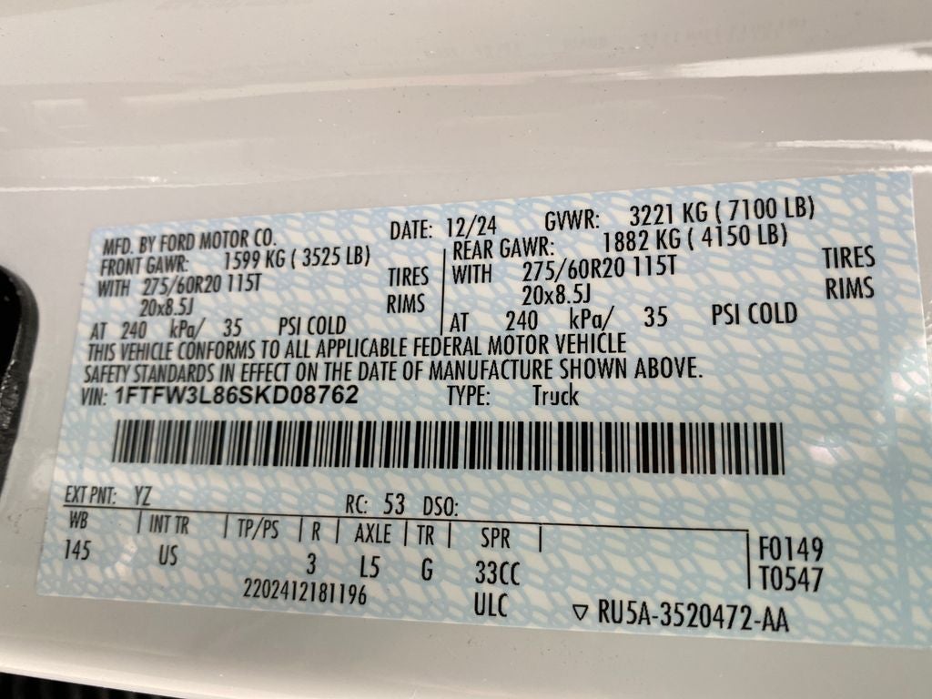 Oxford White 2025 Ford F-150 XLT 4WD 10-Speed Automatic 3.5L V6 EcoBoost