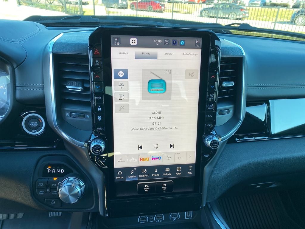 12-Way/1-Way Trailer Connector, 14.4 Touchscreen Display, 4G LTE Wi-Fi Hot Spot, Accent Color Door Handles, Accent Color Premium Power Mirrors, Accent Color Tailgate Handle, Active Driving Assist System, Advanced Safety Group II, Anti-Spin Differential Rear Axle, Apple CarPlay, Auto Power-Folding Mirrors, Auto-Dimming Exterior Driver Mirror, Black Exterior Truck Badging, Black Headlamp Bezels, Black Interior Accents, Black Painted Exterior Mirrors Caps, Black Tail Lamp Bezels, Body Color Front Bumper, Body Color Rear Bumper with Step Pads, Cluster 12 TFT Color Display, Connected Travel and Traffic Services, Connectivity - US/Canada, Convex Wide-Angle Exterior Mirror Insert, Disassociated Touchscreen Display, Drowsy Driver Detection, Dual Exhaust with Black Tips, Evasive Steer Assist, Exterior Mirrors Approach Lamps, Exterior Mirrors Courtesy Lamps, Exterior Mirrors with Heating Element, Exterior Mirrors with Memory, Exterior Mirrors with Supplemental Signals, Front Passenger Interactive Display, Global Telematics Box Module, Google Android Auto, GPS Antenna Input, GPS Navigation, Grille Surround 3 Black Texture 2 Black, Harman/Kardon 19 Speaker Premium Sound, HD Radio, Heads-Up Display, Integrated Center Stack Radio, Integrated Voice Command with Bluetooth®, Intersection Collision Assist System, Laramie Level 2 Equipment Group, LED CHMSL Lamp, Night Edition, Pirelli Brand Tires, Power Tailgate, Proximity Approach/Departure Lamps, Radio: Uconnect 5 Nav with 14.4 Display, Rain Sensitive Windshield Wipers, RAM Grille Badge - Black, SiriusXM Radio Service, SiriusXM with 360L, Sport Performance Hood, Surround View Camera System, Technology Group, Traffic Sign Recognition, USB Host Flip, Wheels: 22 x 9 Forged Aluminum.