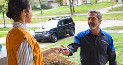 *Ford Pickup & Delivery is offered by participating dealers and may be limited based on availability, distance, or other dealer-specified criteria. Does not include parts or repair charges. A nonoperational vehicle is not eligible and will require a Roadside event. Ford reserves the right to change, modify, or discontinue this program at any time.